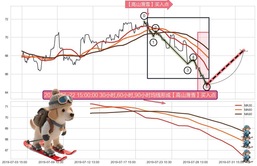 从2019-07-10 15:00至2019-07-31 15:00,共包含91个小时,阶段股价下跌-9.99%,阶段股价变动位移路程比: 1 : 2,下跌趋势角度: 26.1