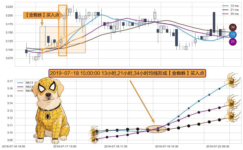 形态多维评估: ⚀ 2019-07-18 15:00:00小时显现 13小时-21小时-34小时均线 【金蜘蛛】买入点 看多信号,后市看涨,买入