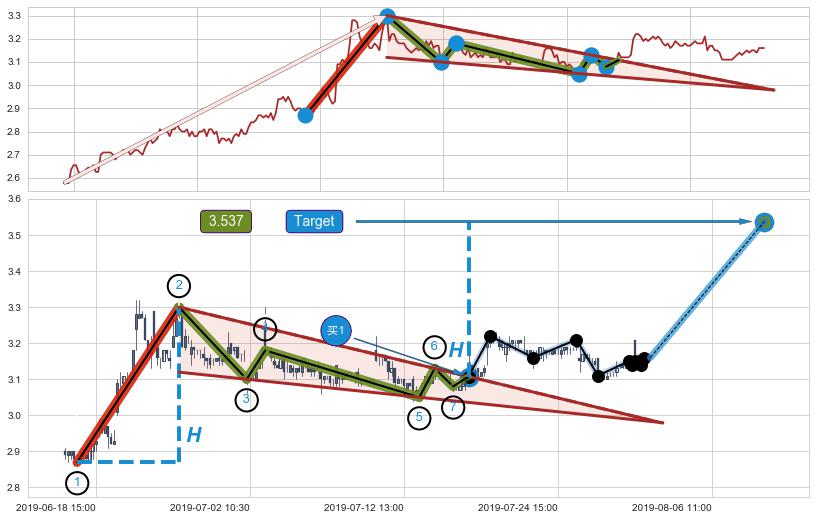➢ 最小中继整理涨幅→𝐇: 0.43000 (𝐇楔型旗杆的长度:楔型起点→顶点)