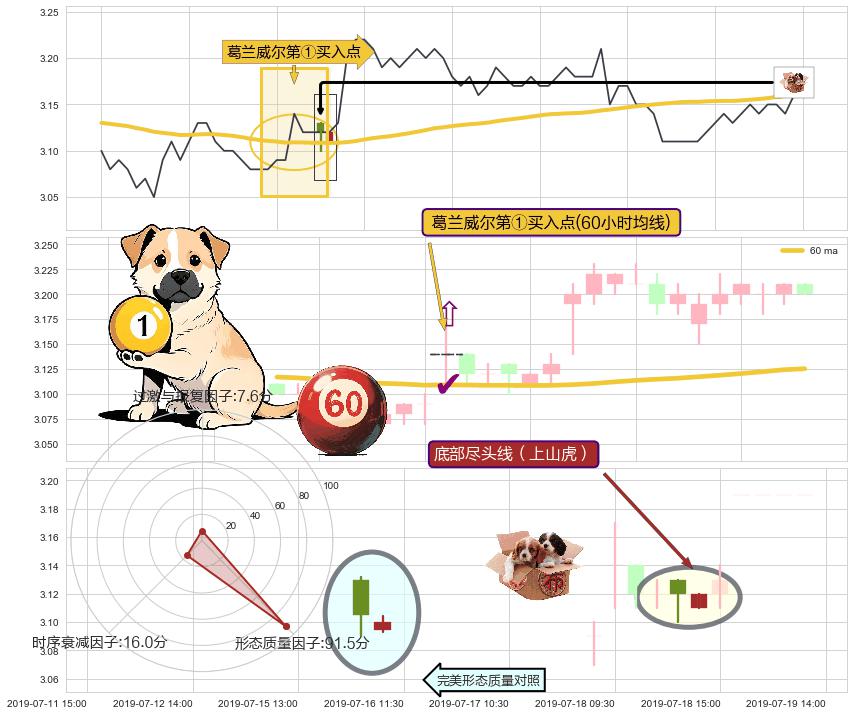 从2019-07-15 11:30至2019-07-31 15:00,共包含76个小时,阶段股价上涨3.66%,阶段股价变动位移路程比: 1 : 7