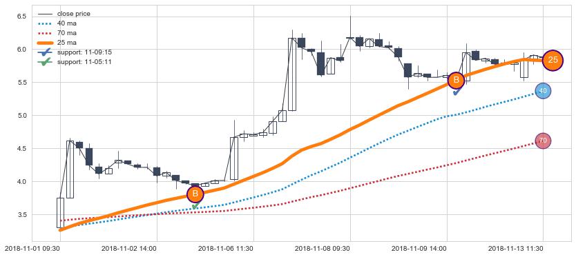 上涨趋势11-01 09:30-11-13 11:30,均线25确认关键支撑2处