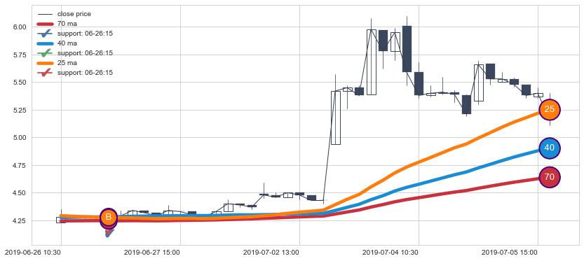 上涨趋势06-26 10:30-07-08 09:30,均线40, 25, 70确认关键支撑1处