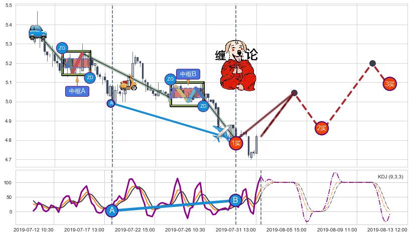 ➣ 【已完成】缠论 起点:07-11:09,完成第1中枢A,完成第2中枢B,终点:07-30:10,缠论共90交易小时