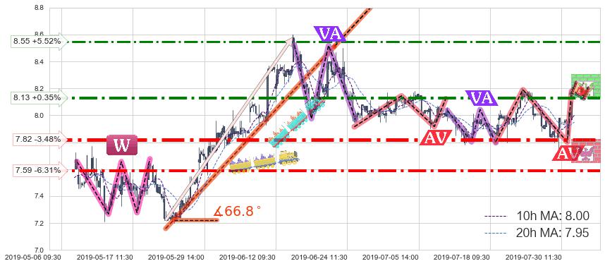 ♘ 阻力价格位8.55,可信任强度55.15%,距离最后交易2019-07-31 15:00形成的收盘价格8.10相差 +5.52%