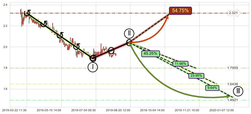 ➢ 高概率大级别循环下跌浪被破坏,反转向上(突破5浪起点)概率54.75%