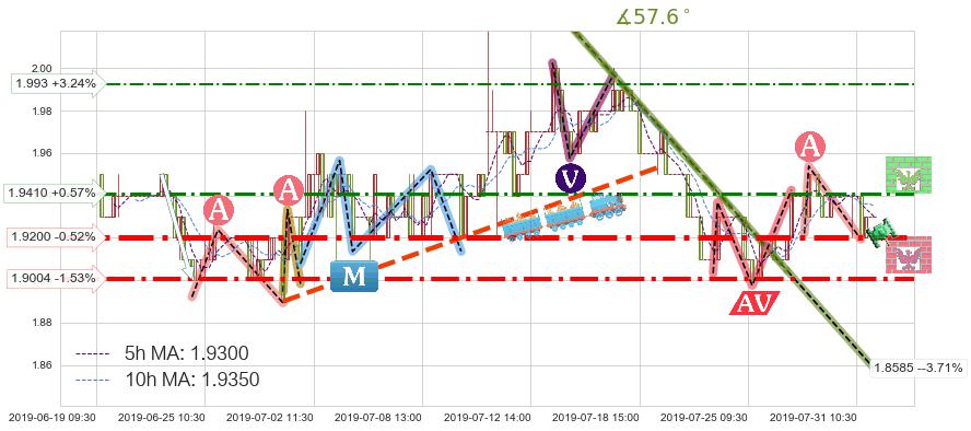 ♘ 阻力价格位1.9410,可信任强度69.16%,距离最后交易2019-07-31 15:00形成的收盘价格1.9300相差 +0.57%