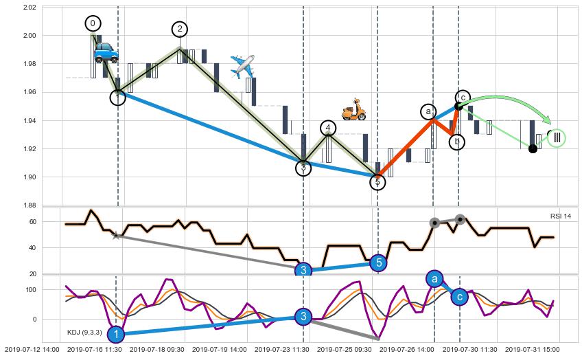 ➣ a,c调整浪RSI走势未出现明显背离