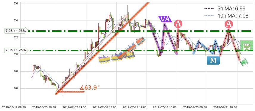 ➣ 【已达成】最小【反转】第一目标价格→(07-16:10: 7.01 ), 后续继续【反转】下跌动力依然存在,下跌空间适中