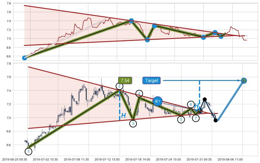 ➣ 07-31:09到达第❷价格目标位置7.03