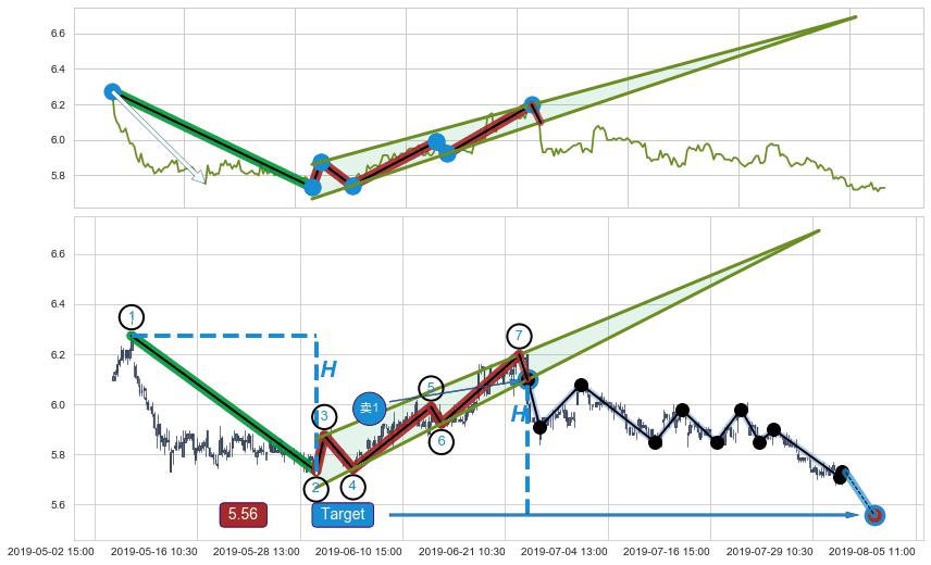 ➢ 最小中继整理跌幅→𝐇: 0.5400 (𝐇楔型旗杆的长度:楔型起点→顶点)