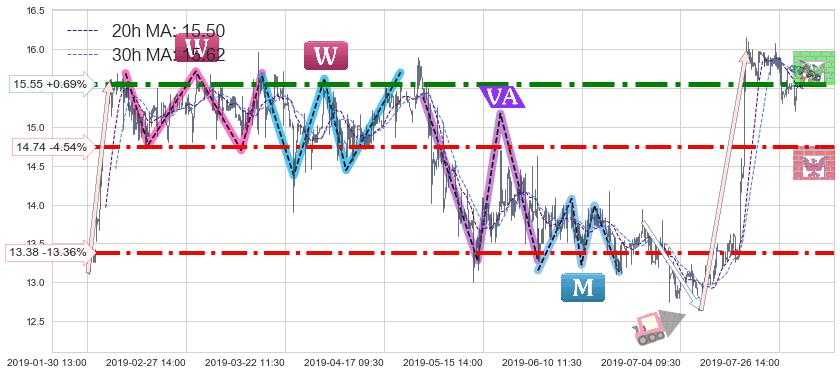 ♘ 阻力价格位15.55,可信任强度91.18%,距离最后交易2019-07-31 15:00形成的收盘价格15.44相差 +0.69%