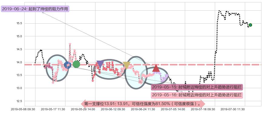 ♘ 支撑价格位13.91,可信任强度81.50%,距离最后交易2019-07-31 15:00形成的收盘价格15.44相差 -9.92%
