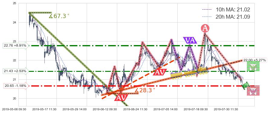 ➣ 【已确认突破】最后价格:20.90与最小【反转】第一目标价格→(08-07:10: 19.21 )相较: 下跌空间【较大】