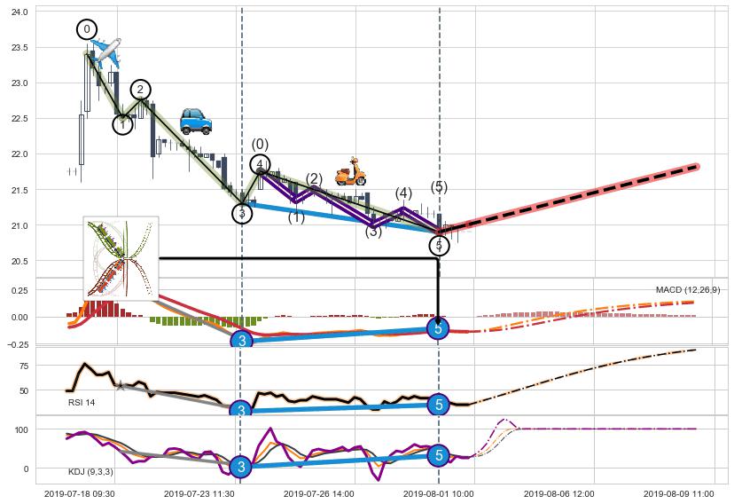 ➣ 1,3,5驱动浪MACD, RSI, KDJ走势都出现【常规背离】反转信号增强
