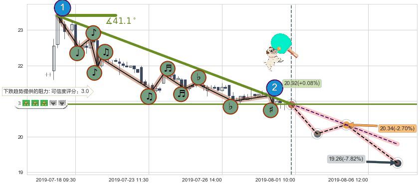 ➣ 预测:2019-08-05 12:00,【试探阻力】稳定目前下跌趋势的前提下,预测价格:20.34