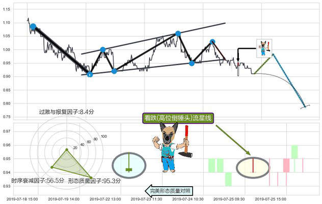 ➢ 🕰 价格走势在2019-07-25 10:30:00至2019-07-25 10:30:00期间形成看跌(高位倒锤头)流星线,残存影响值:-3.91
