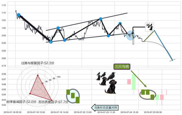 ➢ 🕰 价格走势在2019-07-24 11:30:00至2019-07-24 14:00:00期间形成三只乌鸦,残存影响值:-2.60
