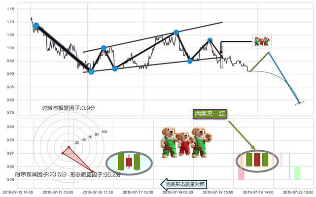 ➢ 🕰 价格走势在2019-07-19 09:30:00至2019-07-19 11:30:00期间形成两红夹一黑,残存影响值:2.13
