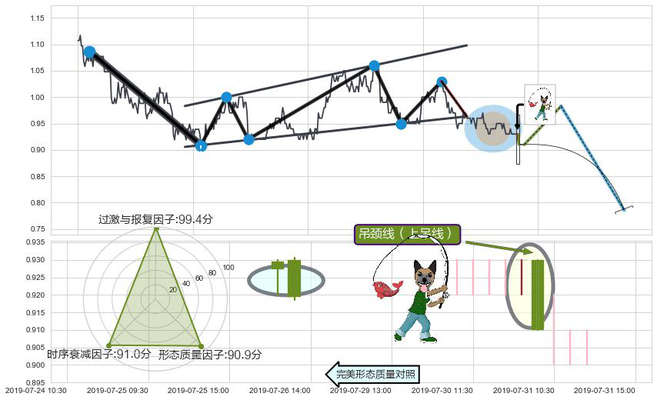 ➢ 🕰 价格走势在2019-07-30 15:00:00至2019-07-31 09:30:00期间形成吊颈线(上吊线),残存影响值:-7.38