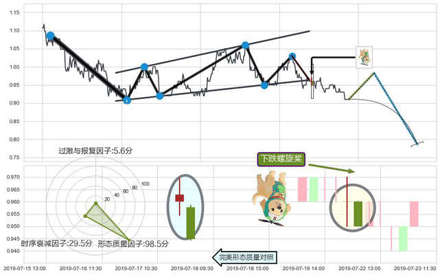 ➢ 🕰 价格走势在2019-07-22 09:30:00至2019-07-22 10:30:00期间形成下跌螺旋桨,残存影响值:-2.38