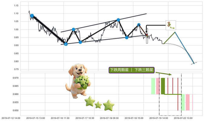 ➢ 🕰 价格走势在2019-07-19 13:00:00至2019-07-22 09:30:00期间形成下跌两颗星 | 下跌三颗星,残存影响值:-1.29