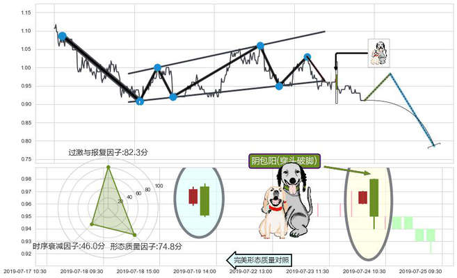 ➢ 🕰 价格走势在2019-07-23 15:00:00至2019-07-24 09:30:00期间形成阴包阳(穿头破脚),残存影响值:-3.96