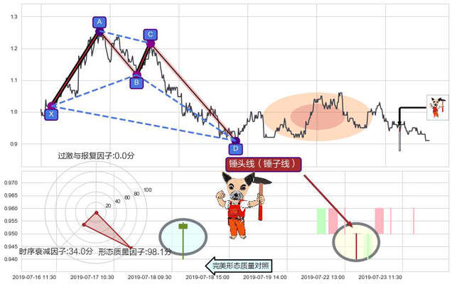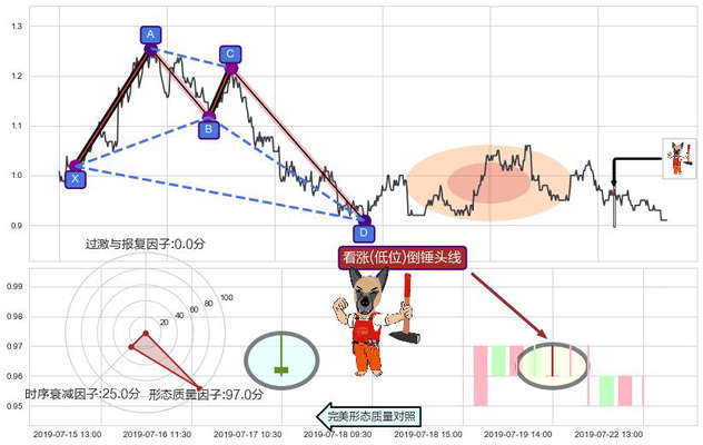➢ 锤头线(锤子线) 🔜 谐波螃蟹d拐点上涨支撑 综合量化分数:53.19 【中性】