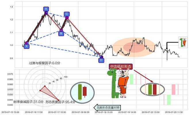 ➢ 中流砥柱形态 + 谐波螃蟹d拐点上涨支撑信号叠加后【反向回撤率】偏高,【看多】信号叠加【存续影响降权】