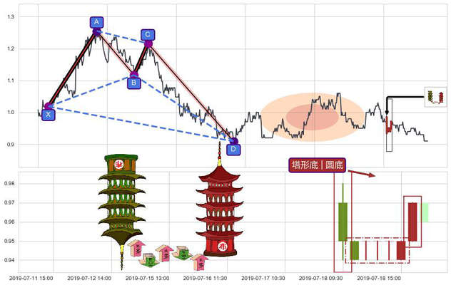 ➢ 🕰 价格走势在2019-07-18 09:30:00至2019-07-19 09:30:00期间形成塔形底 | 圆底,残存影响值:0.63