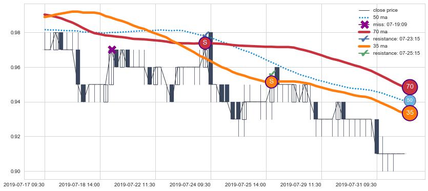 下跌趋势07-17 09:30-07-31 15:00,均线35, 70确认关键阻力2处