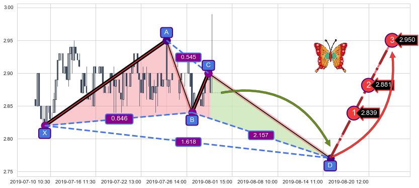 ➣ 未完成【蝴蝶】形态起点X: 07-09:14, 已到达C点: 07-30:14, 预测最终D点: 08-14:15, 共152交易小时