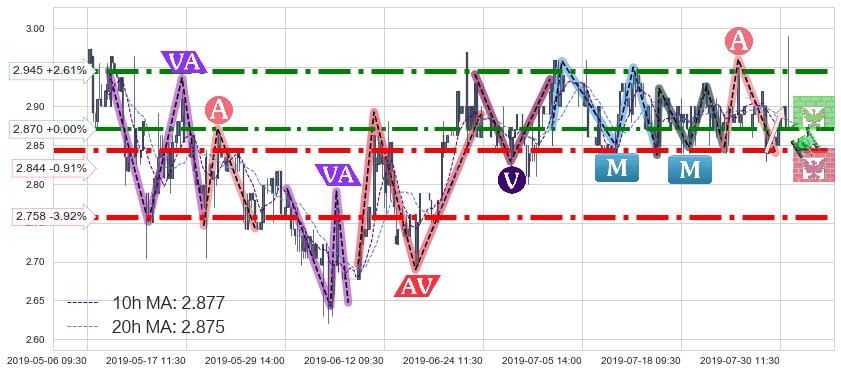 ♘ 阻力价格位2.945,可信任强度99.00%,距离最后交易2019-07-31 15:00形成的收盘价格2.870相差 +2.61%