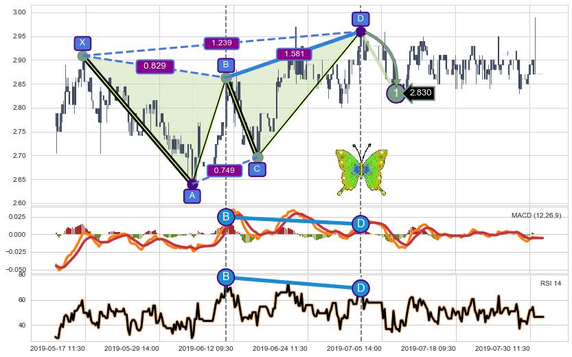 ➣ 已完成【蝴蝶】形态起点X: 05-17:09, 终点D: 07-03:11, 共189交易小时