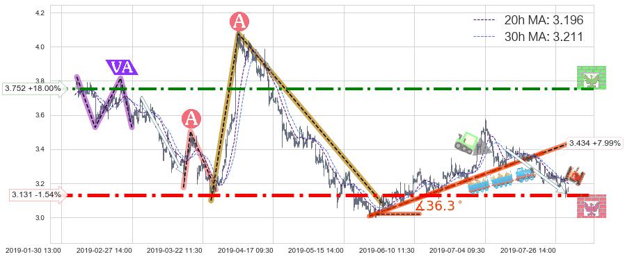 ♘ 阻力价格位3.752,可信任强度70.81%,距离最后交易2019-07-31 15:00形成的收盘价格3.180相差 +18.00%