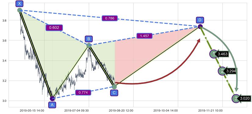 ➣ D点拟合预测价格3.737,距离最后交易收盘价格3.180相差 +17.53%