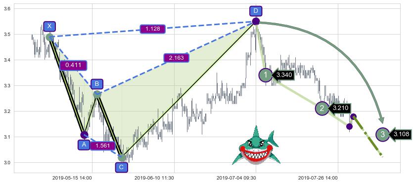 ➣ 已完成【鲨鱼】形态起点X: 05-02:09, 终点D: 07-04:09, 共253交易小时