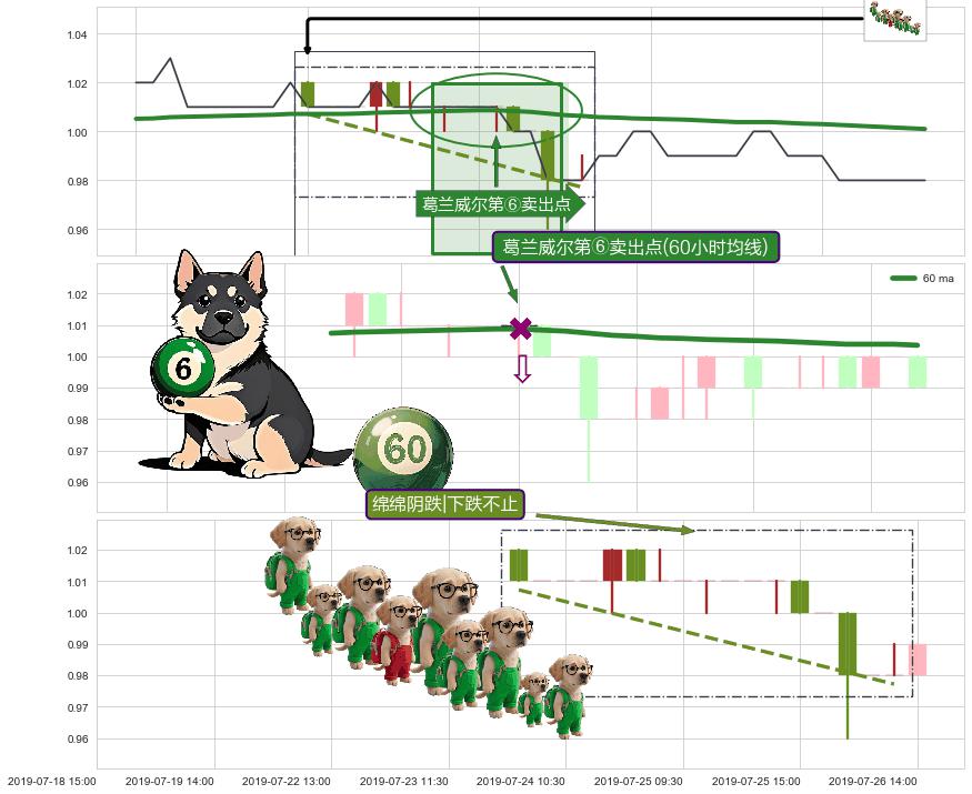 从2019-06-19 11:30至2019-07-05 10:30,共包含66个小时,阶段股价上涨1.58%,阶段股价变动位移路程比: 1 : 34