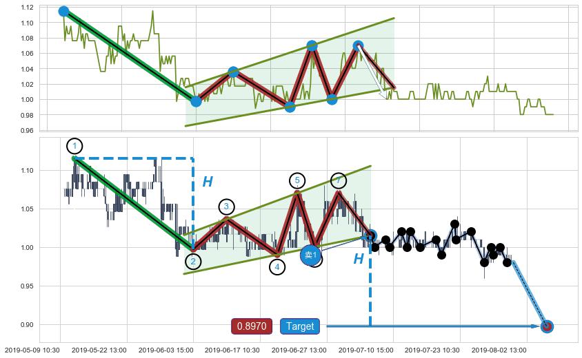 ➣ 最小中继整理跌幅→𝐇: 0.118000 (𝐇旗杆的长度:旗杆起点→顶点)