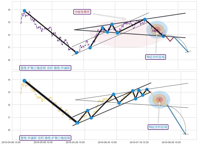 | 2 🅚:绵绵阴跌|下跌不止 ➕ 📐:扩散三角反转猜想突破点临近,临近关键支撑位,预期下沉突破下跌 ☞ 看空信号 ⇥ 【🅚线】交织【图形】⇥ 综合量化分数: 40 | > |