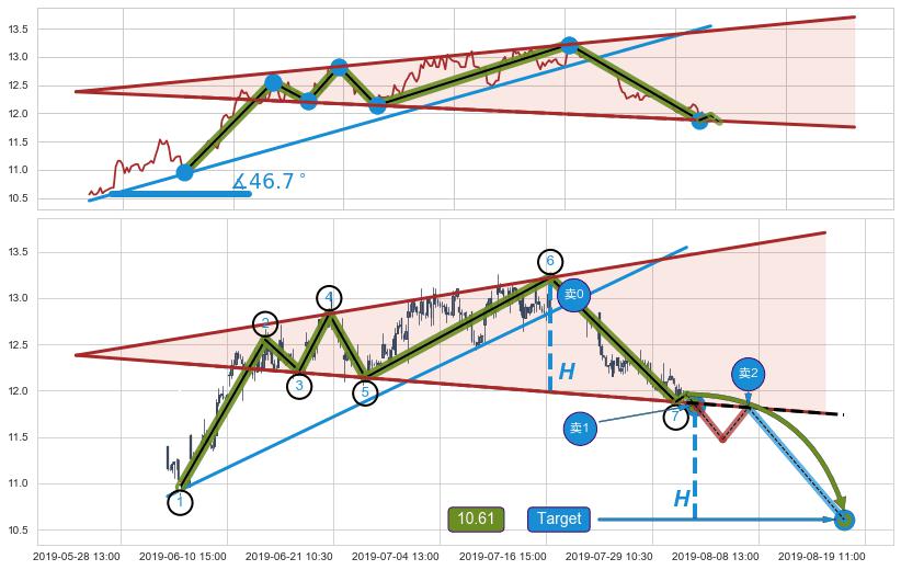 从2019-05-24 09:30至2019-07-23 11:30,共包含243个小时,阶段股价上涨16.58%,阶段股价变动位移路程比: 1 : 8,上涨趋势角度: 46.7