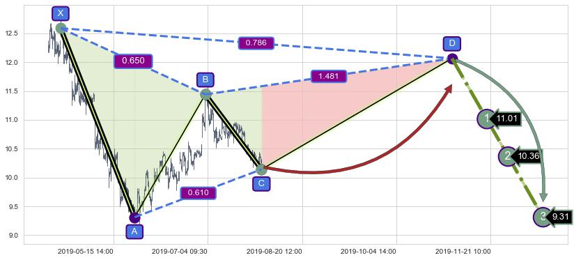 ➢ 距离预测D点位置有足够的上涨空间, 与看跌【伽利】形态相反,实际方向【看涨】