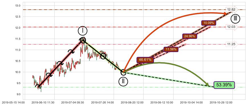 ➣ 循环浪继续向上【平均值】位置(10-10:15, 12.03),匹配聚类样本比例53.54%, 可能性概率24.96%