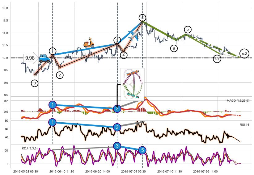 ➢ a,c调整浪MACD, RSI, KDJ走势都【未出现】背离,abc走势延续, 5浪反转概率增强