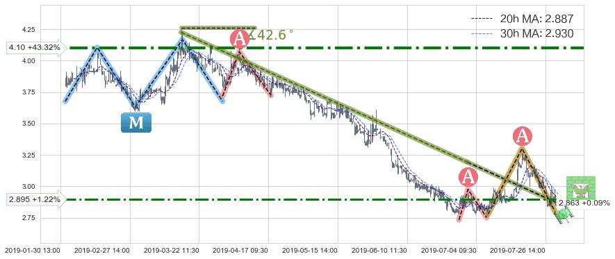 ♘ 阻力价格位4.10,可信任强度70.68%,距离最后交易2019-07-31 15:00形成的收盘价格2.860相差 +43.32%