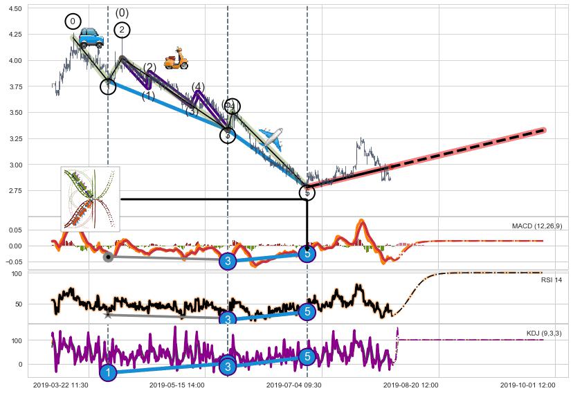 ➣ 1,3,5驱动浪MACD, RSI, KDJ走势都出现【常规背离】反转信号增强