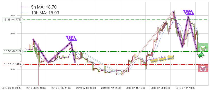 ♘ 支撑价格位18.15,可信任强度69.95%,距离最后交易2019-07-31 15:00形成的收盘价格18.50相差 -1.90%