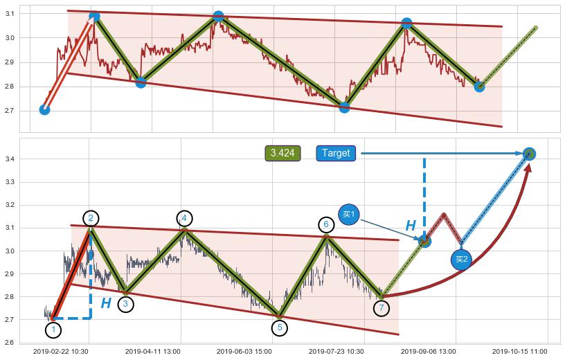 ➣ 最小中继整理涨幅→𝐇: 0.37400 (上平行阻力线与下平行支撑线的垂直距离)