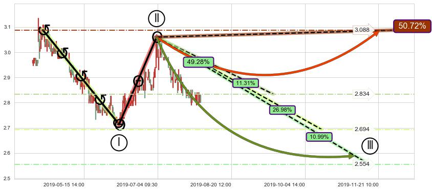 ➢ 循环浪继续向下【最低】位置(11-15:10, 2.554),匹配聚类样本比例22.30%, 可能性概率10.99%
