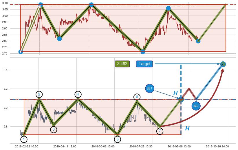 ➣ 最小中继整理涨幅→𝐇: 0.38300 (𝐇旗杆的长度:旗杆起点→顶点)