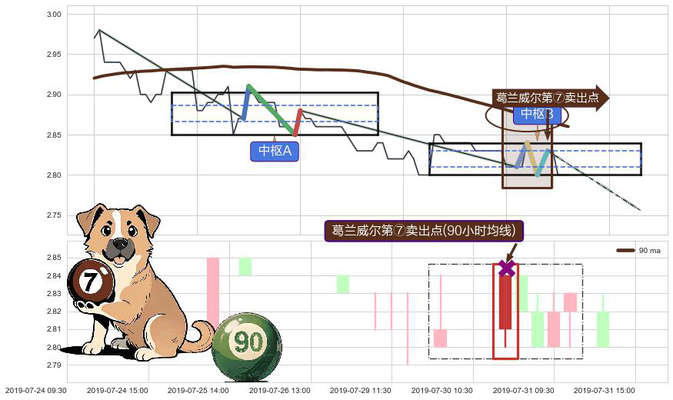 ➣ 🕰 价格走势在2019-07-29 15:00:00至2019-07-31 10:30:00期间形成葛兰威尔第⑦卖出点,残存影响值:-14.56